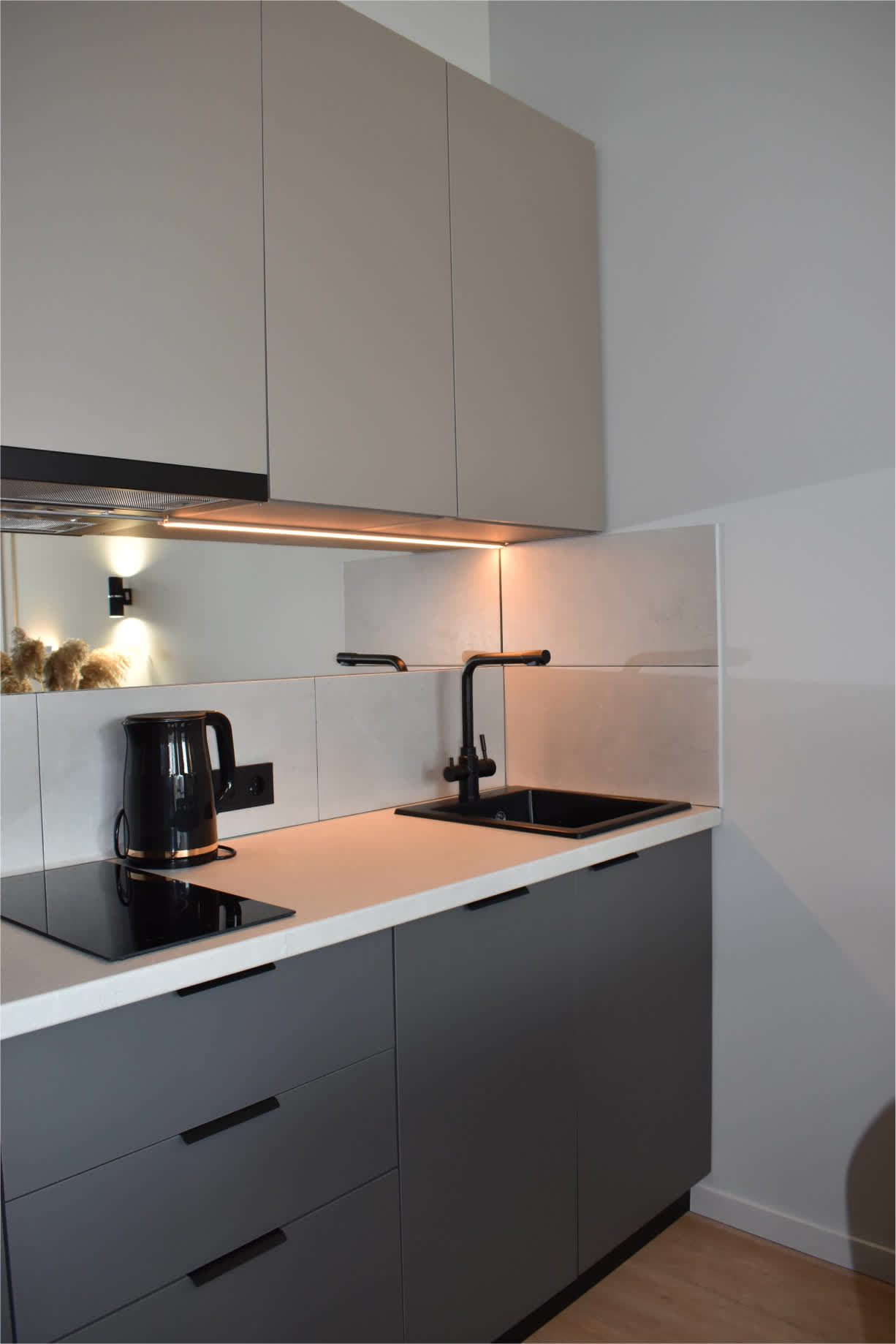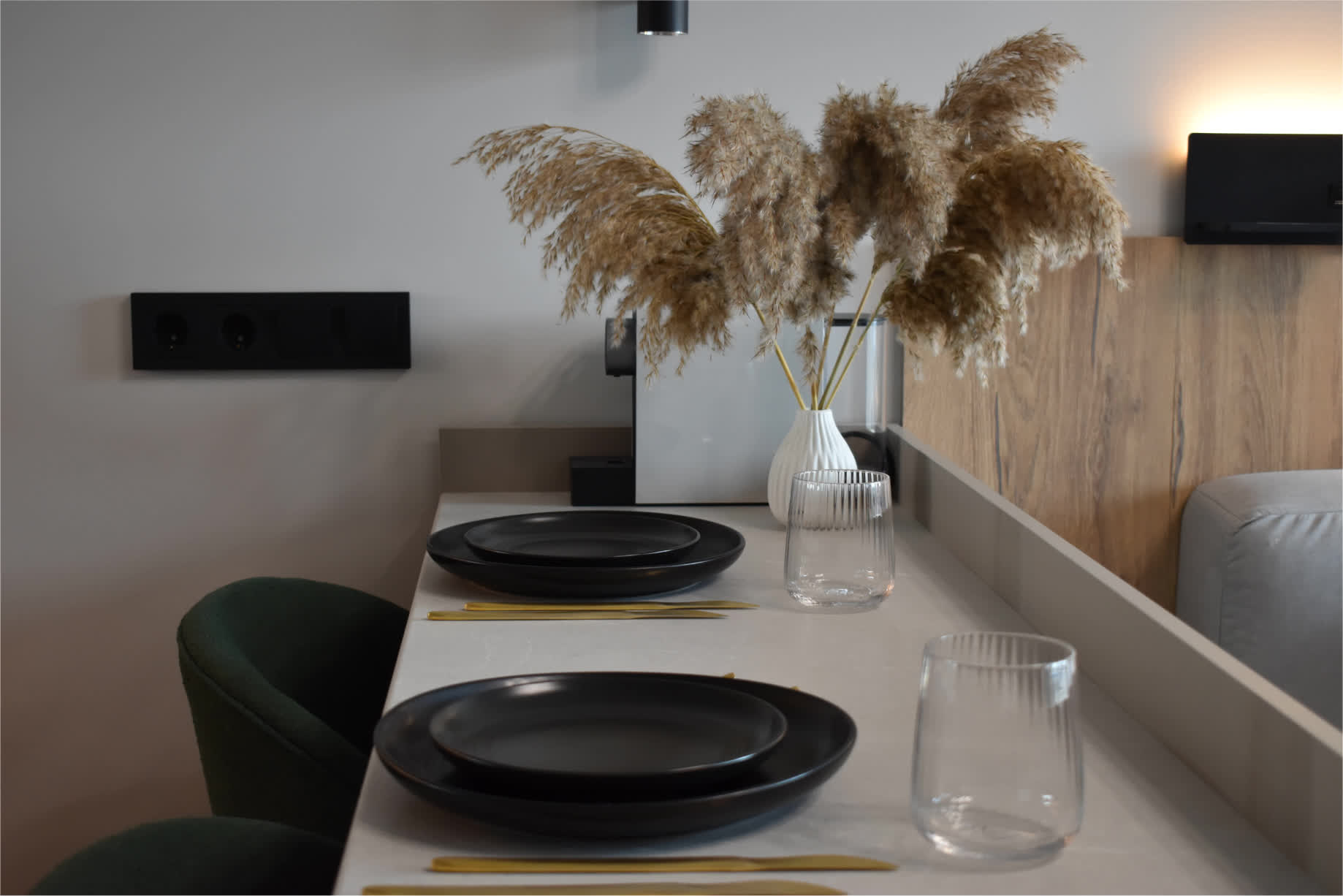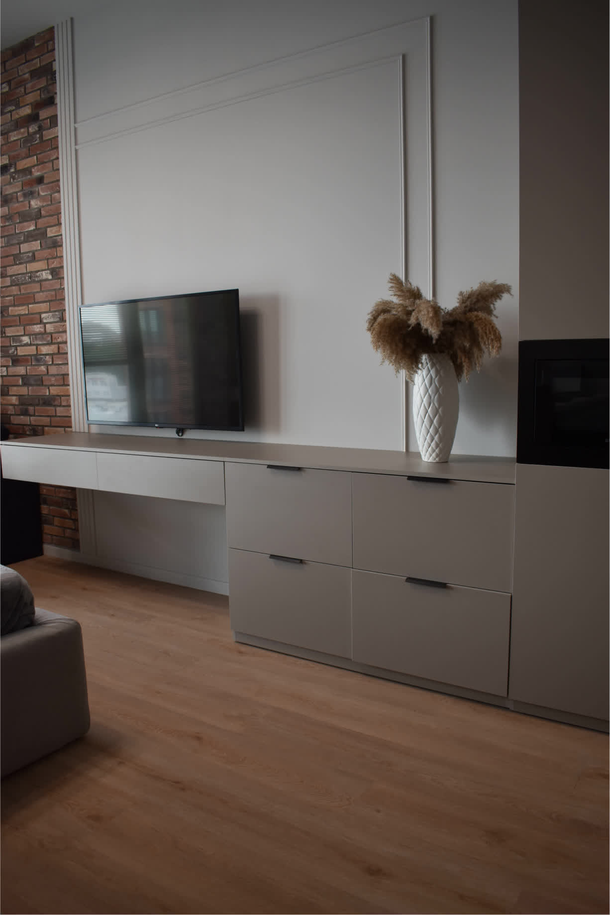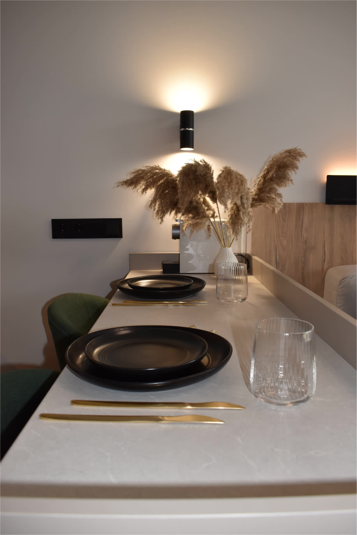 Апартаменты под коммерческую недвижимость. Задача стояла уложится в бюджет и сделать дизайн, отталкиваясь от стиля предложенного застройщиком.