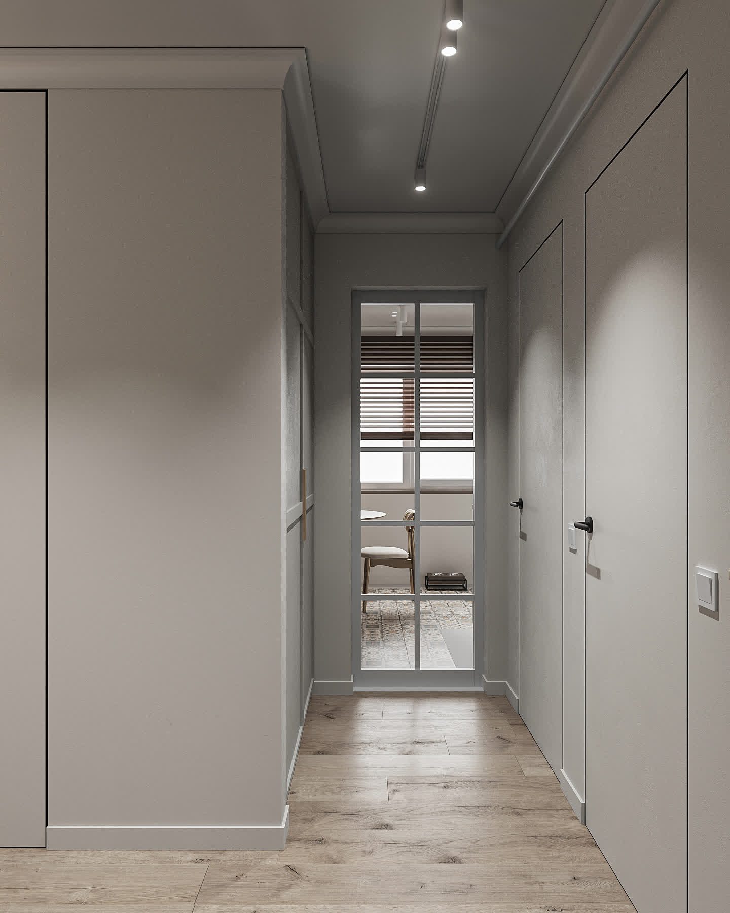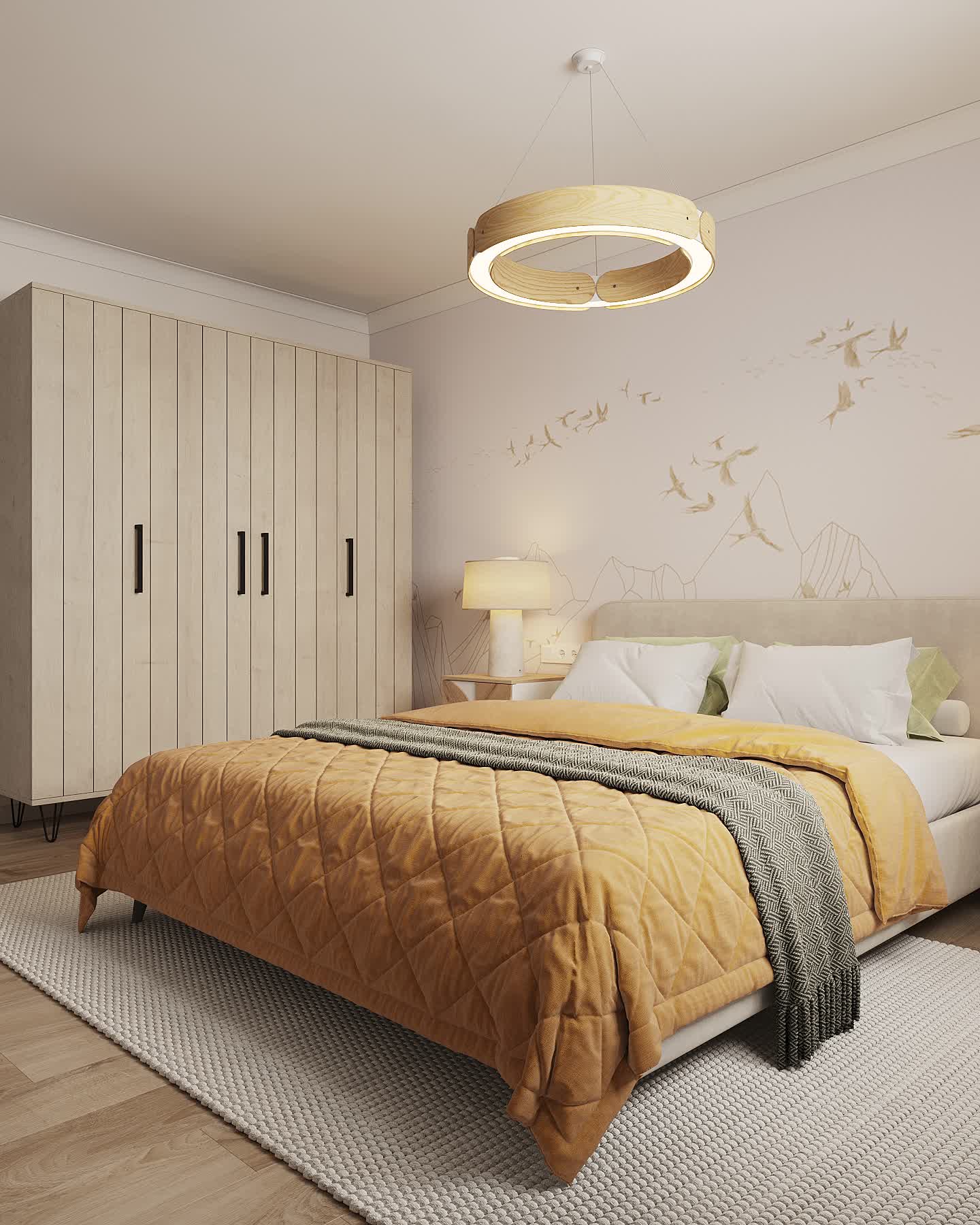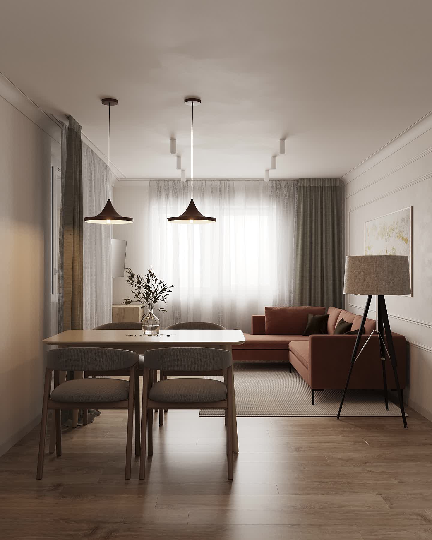 По запросу заказчика была осуществлена небольшая перепланировка. В интерьер были добавлены теплые светлые тона, так мы избежали акцента на низкие потолки.