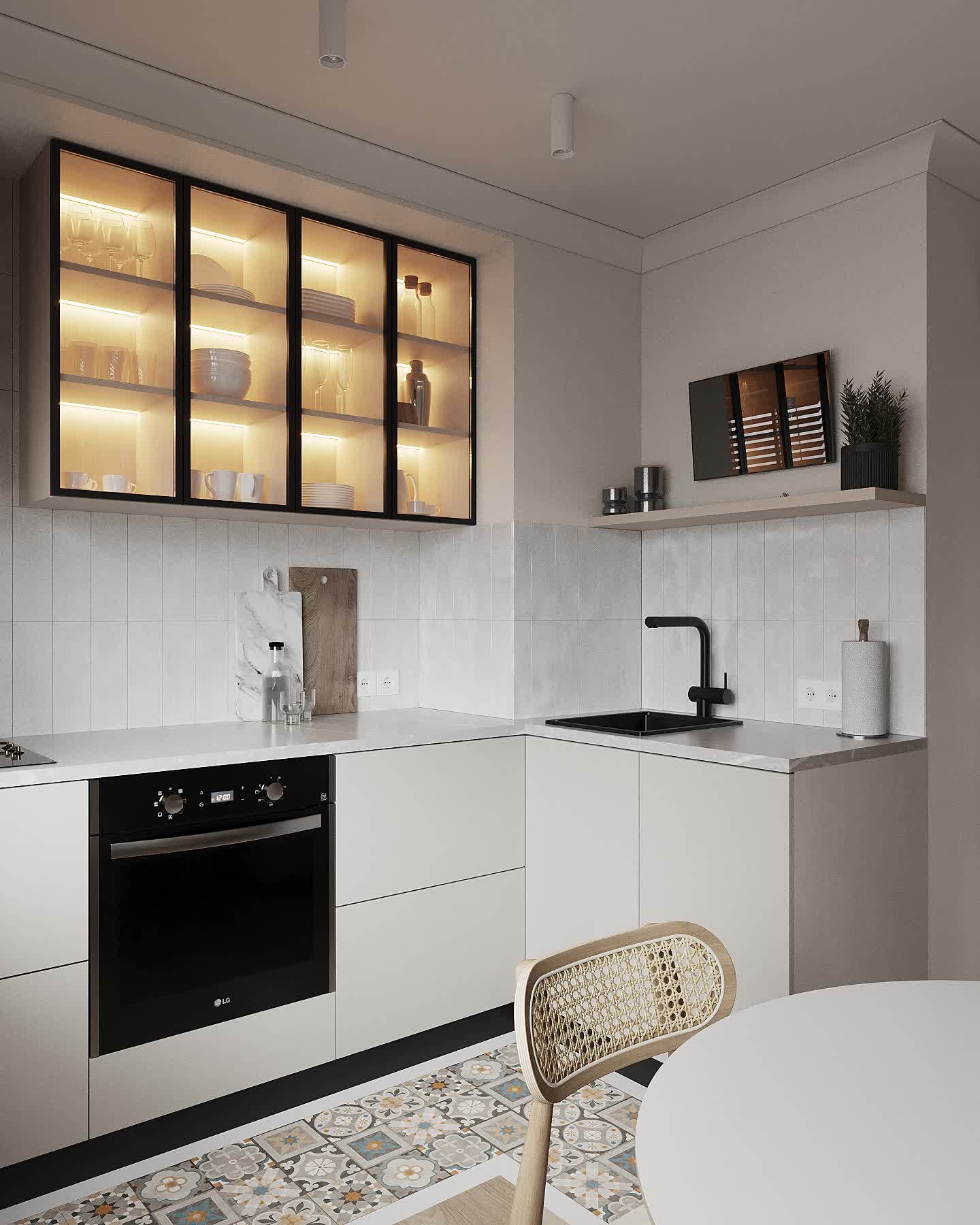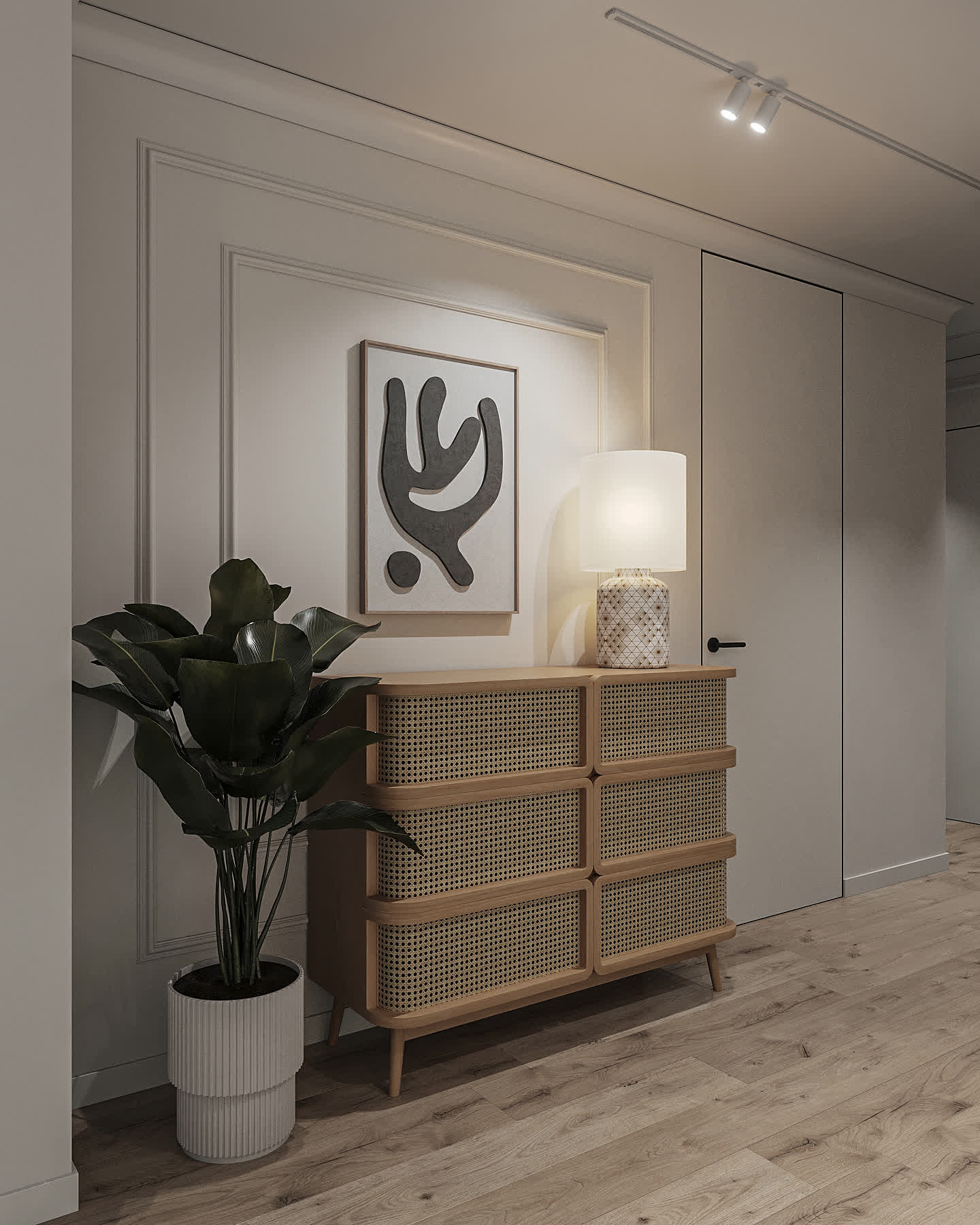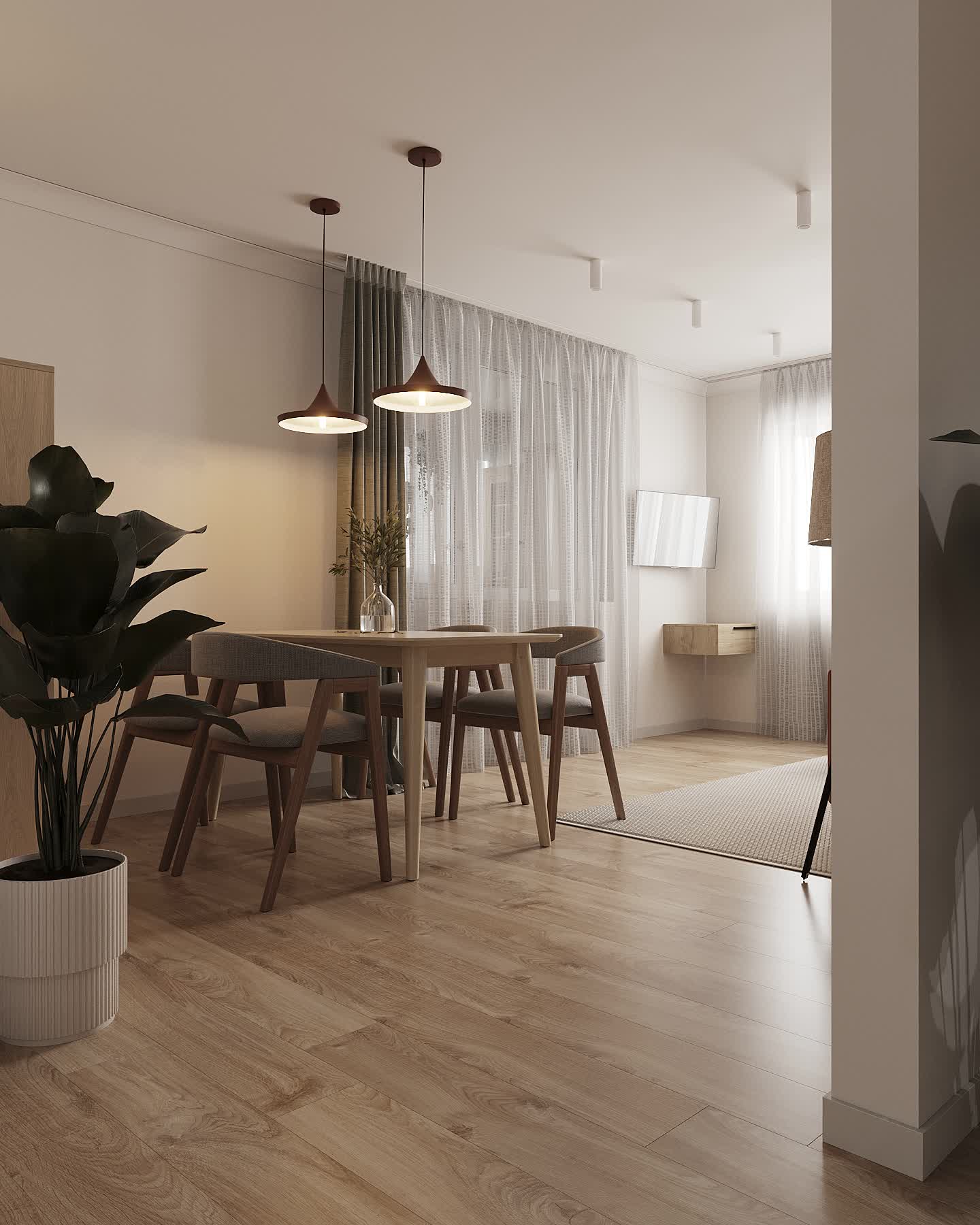 По запросу заказчика была осуществлена небольшая перепланировка. В интерьер были добавлены теплые светлые тона, так мы избежали акцента на низкие потолки.